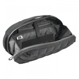 Notranjost je premišljeno urejena: sprejme konzolo, igralne kartice, krmilnike Joy‑Con, kable in drobne dodatke. Vgrajen čvrst ročaj olajša prenašanje doma in na poteh, medtem ko univerzalna črna izvedba deluje čisto in moderno.