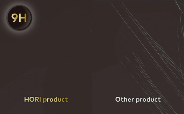 - Trdota 9H – odpornost proti praskam od ključev, kovancev in drugih predmetov.