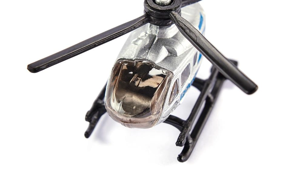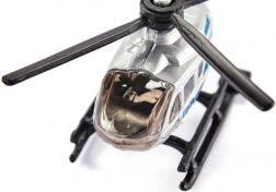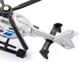 Natančno oblikovana kabina, smučkasto pristajalno podvozje in vrteči se rotorji naredijo model zvesto miniaturo policijskega helikopterja.