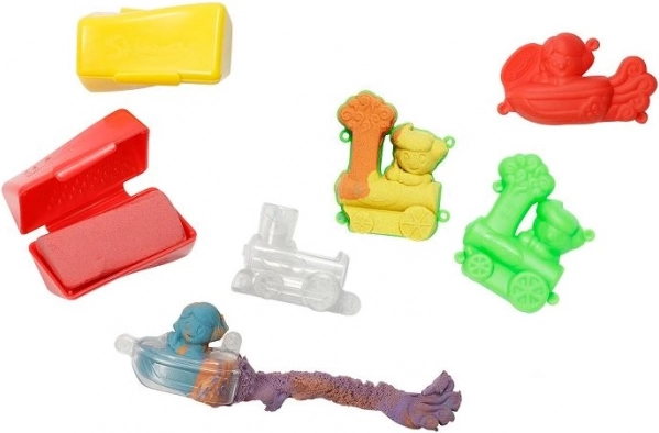 Komplet vsebuje edinstvene modelčke v obliki vozil in orodja za enostavno stiskanje ter oblikovanje podrobnosti.