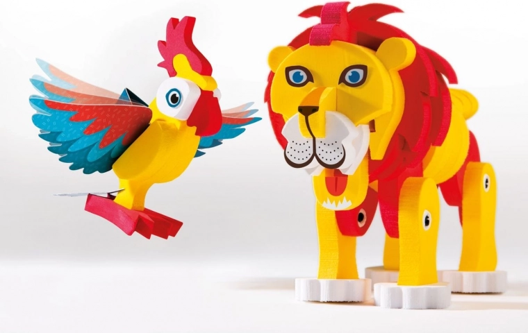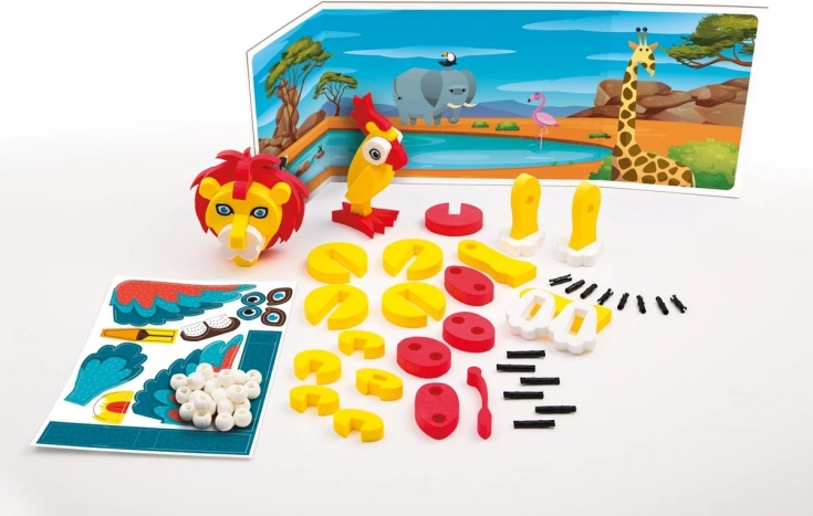 S tem ustvarjalnim kompletom si otroci na igriv način zgradijo prikupne živalice iz mehkih penastih delov. Deli se zlahka prijemajo, prijetno stiskajo in so varni za majhne roke. Igra spodbuja razvoj fine motorike, koordinacije oko–roka in domišljije.
