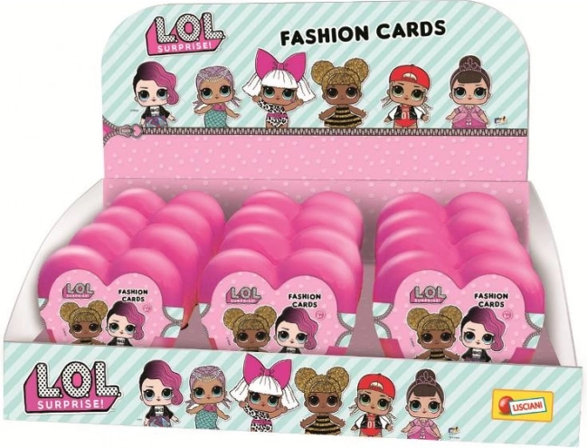 Odkrijte zabavne modne kartice L.O.L. Surprise! s presenečenjem v plastičnem srčku. Vsako pakiranje vsebuje 7 zbirateljskih kartic, list nalepk in bleščečo kartonasto punčko L.O.L. s podstavkom. Več kot 40 kartic v kolekciji za neskončno zbiranje in ustvarjalno igro.
