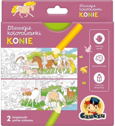 Ta izvirni set CZUCZU otroke popelje v svet konj in življenja v hlevu. Na eni strani čakajo velikoformatne pobarvanke, na drugi starosti primerne naloge in uganke za predšolske otroke. Ilustracije so polne humorja in detajlov, ki spodbujajo domišljijo in zbranost.