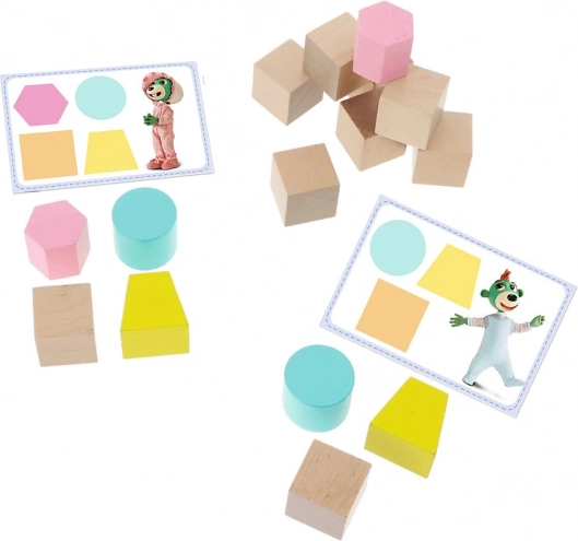 Izobraževalni leseni komplet za najmlajše s 15 barvitimi kockami in kartami z liki BOBAŚKI IN MEDO znamke Trefl. Otroci pravilno ujemajo oblike s kartami ter razvijajo fino motoriko, razvrščanje oblik in logično mišljenje. Varna izdelava iz lesa z nestrupenimi barvami ter možnost kombiniranja z drugimi seti O! Klocki.