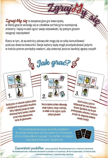 »ZgrajMy się« ponuja izvirno igralno izkušnjo z glasbeno tematiko, kjer med »koncertom« komunikacija ni dovoljena, svoje strategije pa usklajujete le med premori med krogi. Vsaka odločitev šteje, skupno ujemanje ekipe pa prinaša občutek dobro odigrane simfonije. Zaradi kratkega trajanja in preprostih pravil je igra odlična kot party igra tudi za družine z najstniki.