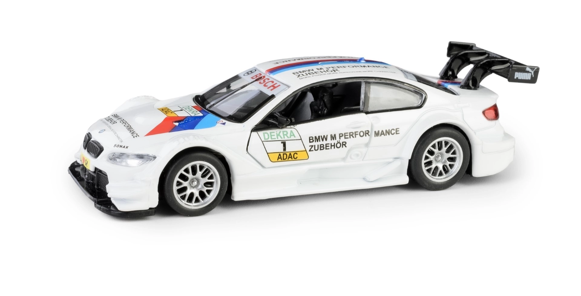 Avtentične proporcije, dirkaške nalepke in aerodinamični elementi zagotavljajo zvest videz vozila BMW M3 DTM – idealno za igro in za zbirateljske vitrine.