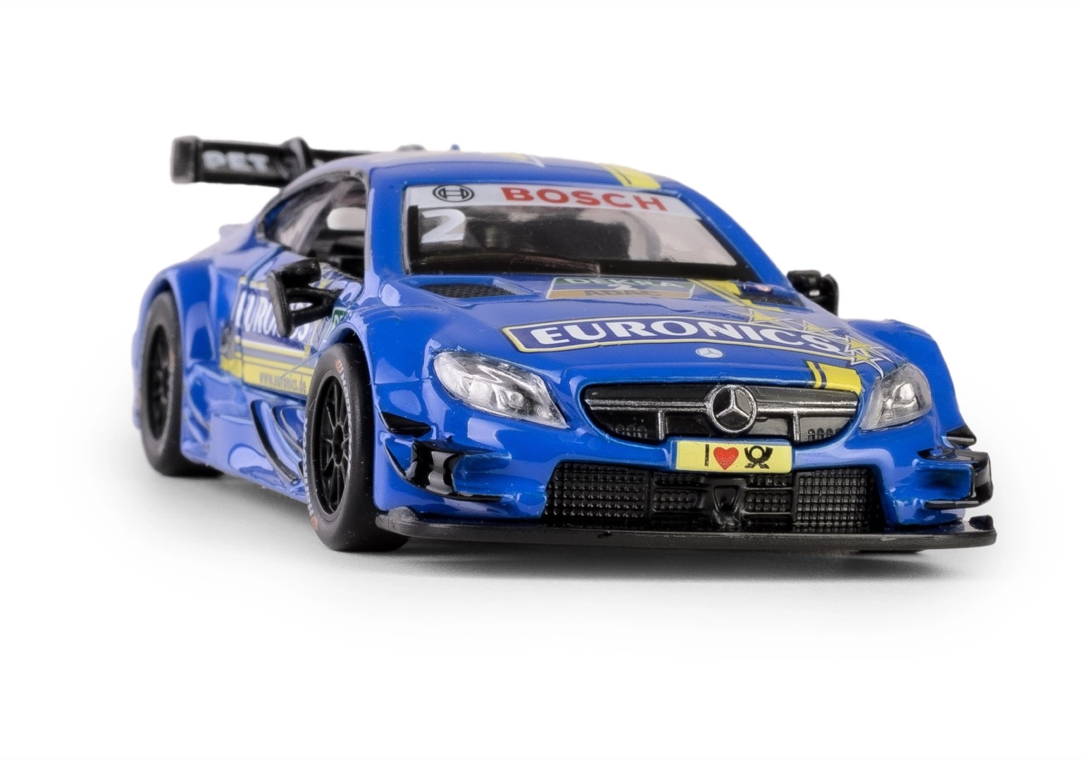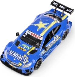 Avtentičen moder model dirkalnega vozila MERCEDES‑AMG C 63 DTM v merilu 1:43 združuje kovino in plastiko za visoko trpežnost ter realistične detajle. Ponuja odpirajoča se stranska vrata, gumijaste pnevmatike in zabaven navijalni (pull‑back) pogon. Idealno za otroke od 3 let naprej in zbiratelje, izdelek izpolnjuje evropske varnostne standarde CE.