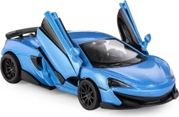 Uživajte v realistični izkušnji s kovinskim modelom RMZ City McLaren 600LT v elegantni modri barvi. Precizna izdelava karoserije, prefinjeni detajli in kakovostni materiali ga naredijo odličen kos za vitrino in hkrati trpežno igračo za vsakodnevno igro. Odpirajoča se stranska vrata omogočajo pogled v podrobno notranjost, gumijaste pnevmatike pa poskrbijo za gladko vožnjo.