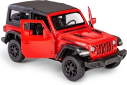 Uživajte v ikoničnem terencu v žepni različici. Ta model JEEP Wrangler Rubicon 2021 prinaša robusten videz, rdečo karoserijo s soft top streho in skrbno izbrane detajle. Kovinsko ohišje v kombinaciji s plastičnimi elementi zagotavlja vzdržljivost, medtem ko funkcionalni elementi, kot sta pogon na povratno navijanje (pull-back) in odpirajoča se vrata, ponujajo avtentično zabavo.