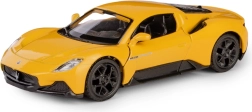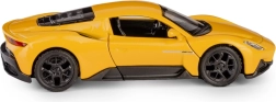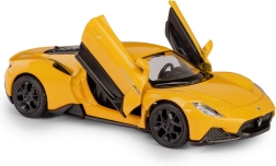 Model je opremljen z vzvratnim navijalnim pogonom (pull-back), zato ga le potegnite nazaj, spustite in avto živahno odbrzi naprej. Rumena barvna izvedba, prosto vrtljiva kolesa in robustni materiali zagotavljajo dolgo življenjsko dobo pri igri in privlačen videz v vitrini.