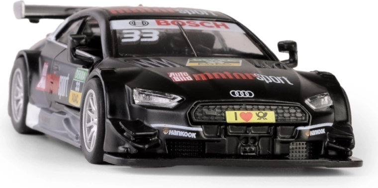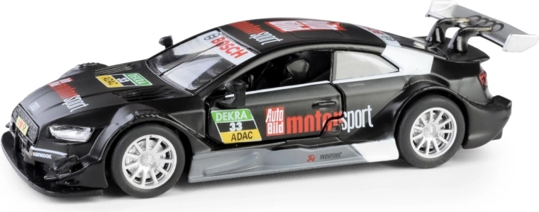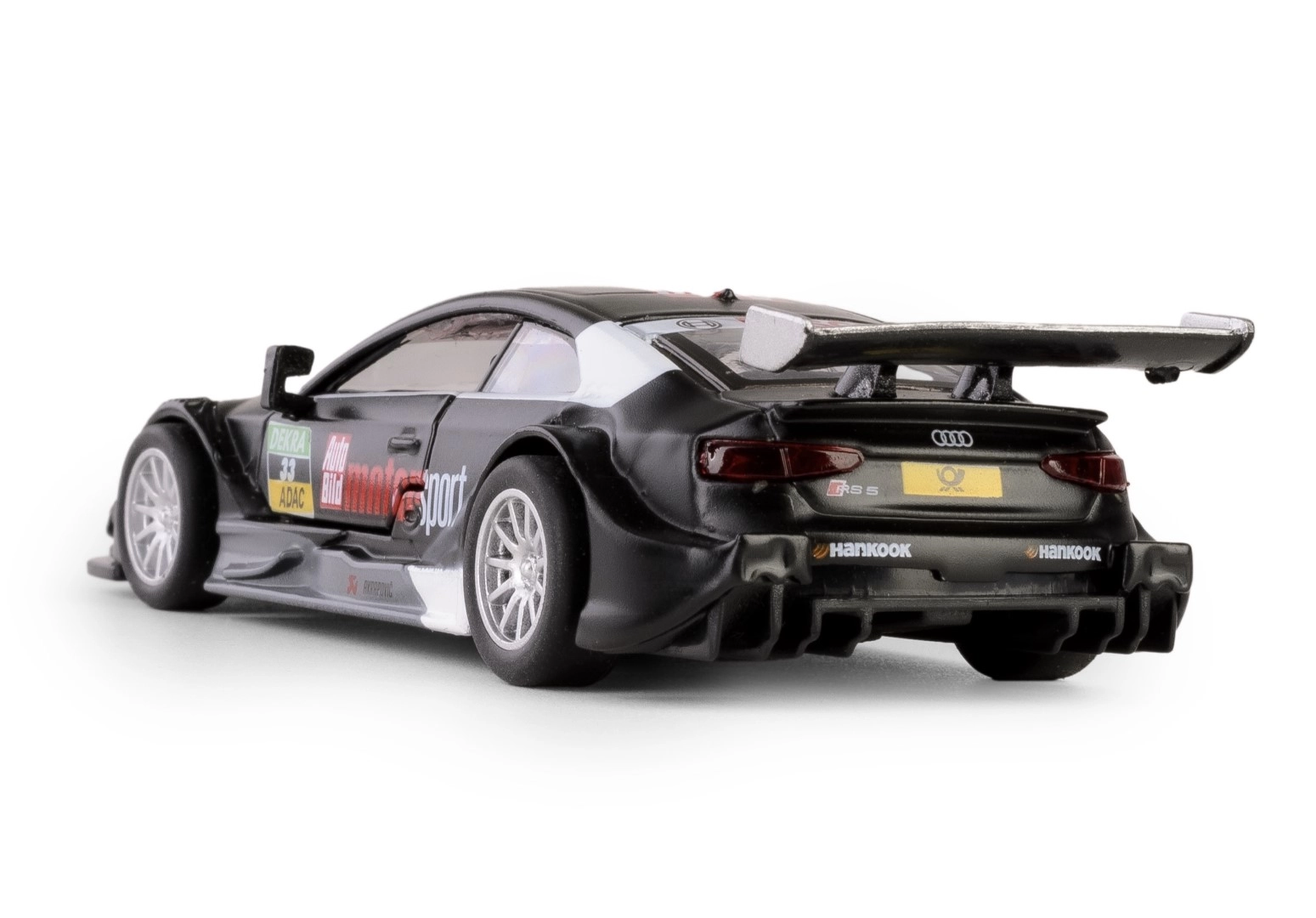 Natančno izdelan model vozila AUDI RS 5 DTM v merilu 1:43 bo navdušil zbiratelje in otroke. Kovinska karoserija s plastičnimi detajli verno povzema športni dizajn, z odpirajočimi se vrati in povratnim navijalnim mehanizmom (pull-back) pa ponuja odlično interaktivnost. Licenciran izdelek izpolnjuje evropske varnostne standarde in je primeren za otroke od 3 let naprej.