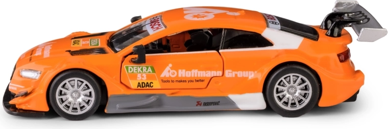 Uživajte v podrobni repliki dirkalnega speciala AUDI RS 5 DTM v kompaktnem merilu 1:43. Model v živahni oranžni barvi združuje realističen videz s praktičnimi funkcijami, ki razveselijo tako otroke kot odrasle. Odpirajoča se vrata razkrijejo skrbno izdelano notranjost, gumijaste pnevmatike pa zagotavljajo odlično stabilnost pri vožnji.
