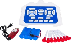 Del paketa je polnilni akumulator 4,8 V 700 mAh Ni-Cd s polnjenjem prek USB ter komplet 8 puščic s priseski. Robot se giblje naprej in nazaj, zavija desno in levo, zna drseti in izvesti 360° obrat. Streljanje puščic ima doseg približno 5 m. Način DEMO prikaže vse sposobnosti z enim pritiskom, večstopenjska regulacija glasnosti pa zagotavlja udobno uporabo doma in na prostem.