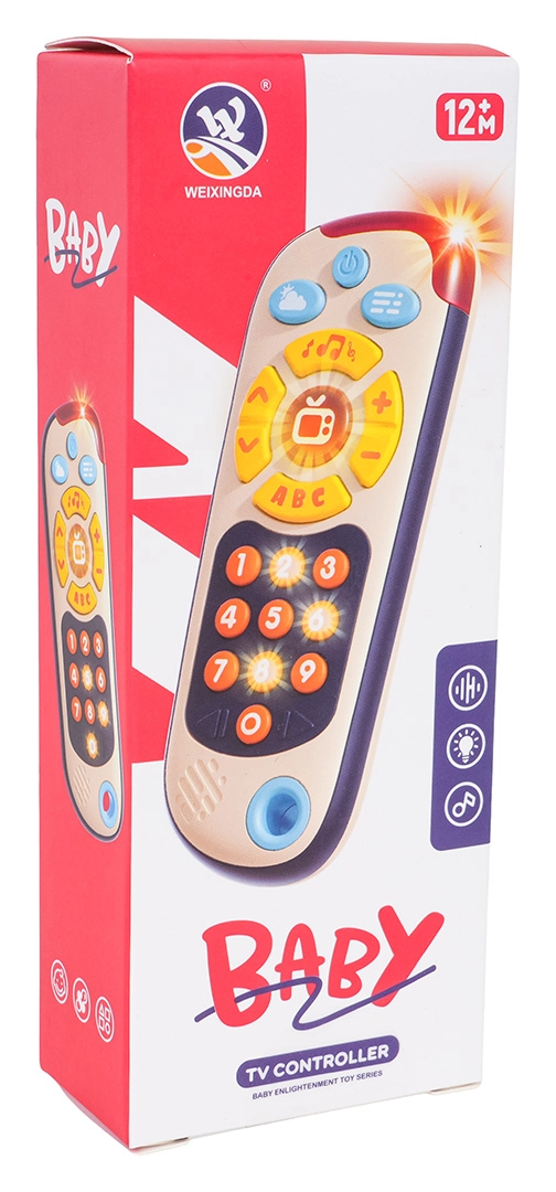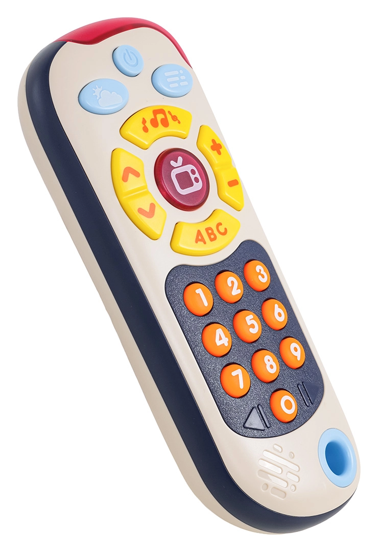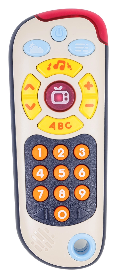 Ta barvit otroški daljinec posnema pravo daljinsko upravljanje in spodbuja otroke k odkrivanju. Ponuja tri načine: številke, »televizijsko« vsebino in mini igro »whack-a-mole« z osvetljenimi gumbi. Veliki, mehki gumbi in prijetne svetlobne indikacije podpirajo koordinacijo oko–roka in razvoj besedišča.