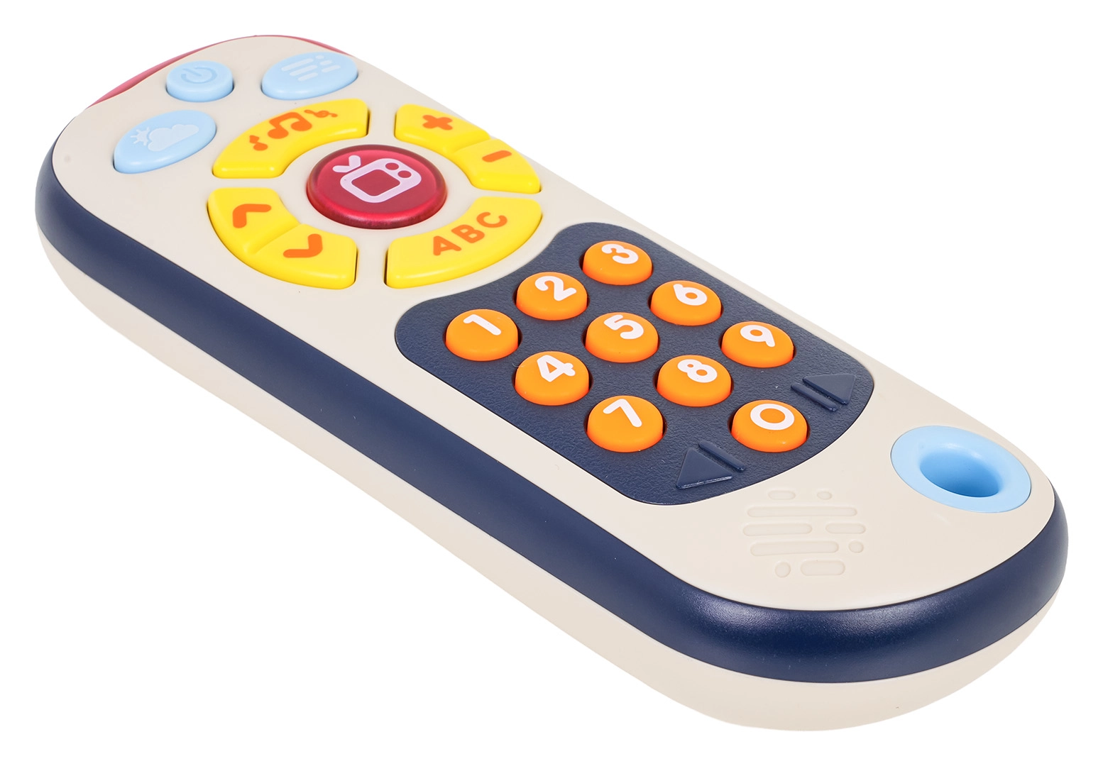 Kakovostna plastika brez ostrih robov, veliki barvni gumbi, +/− za glasnost in puščice za enostavno preklapljanje. Idealno od 12 mesecev.