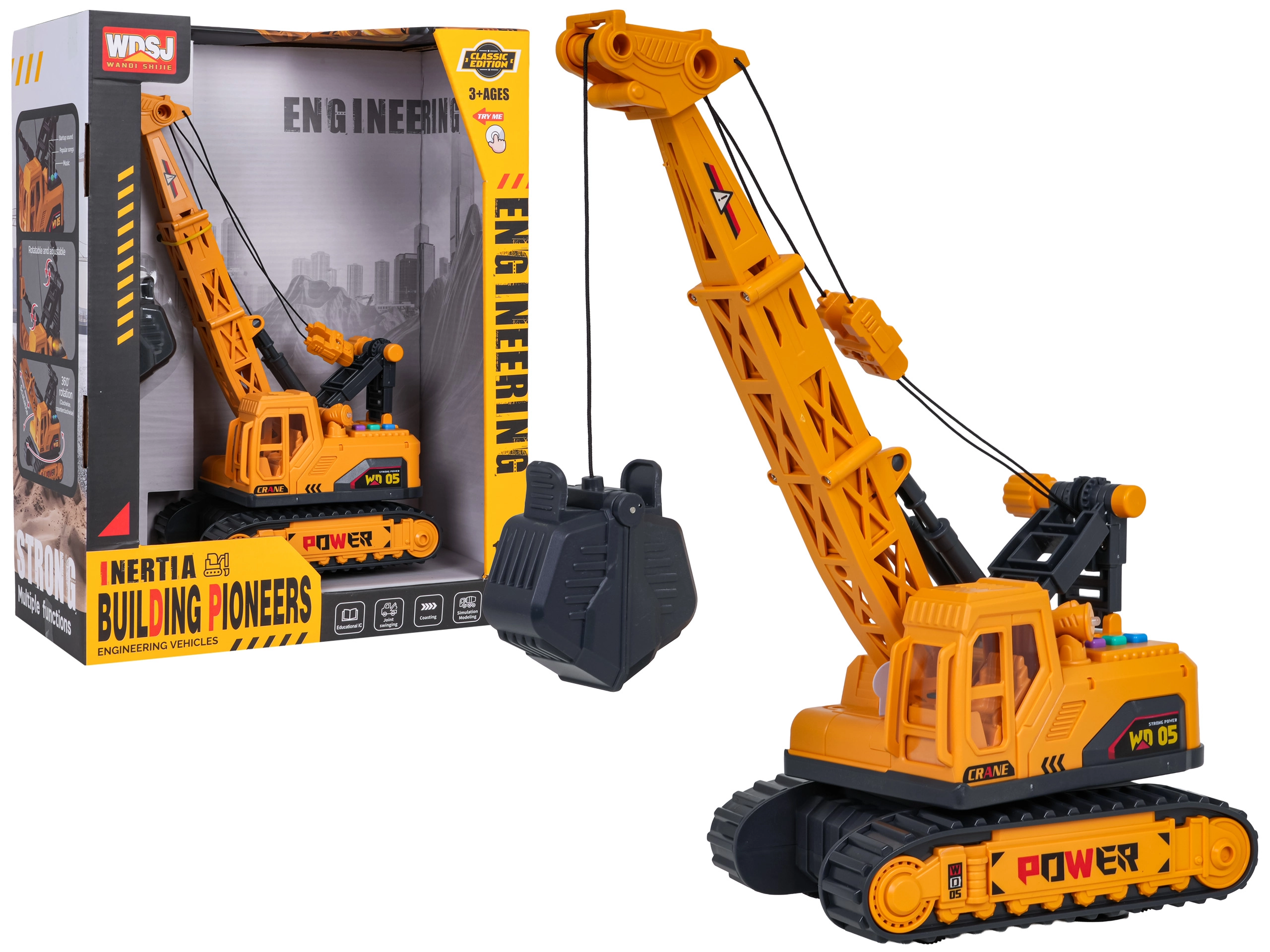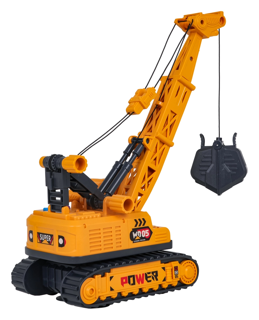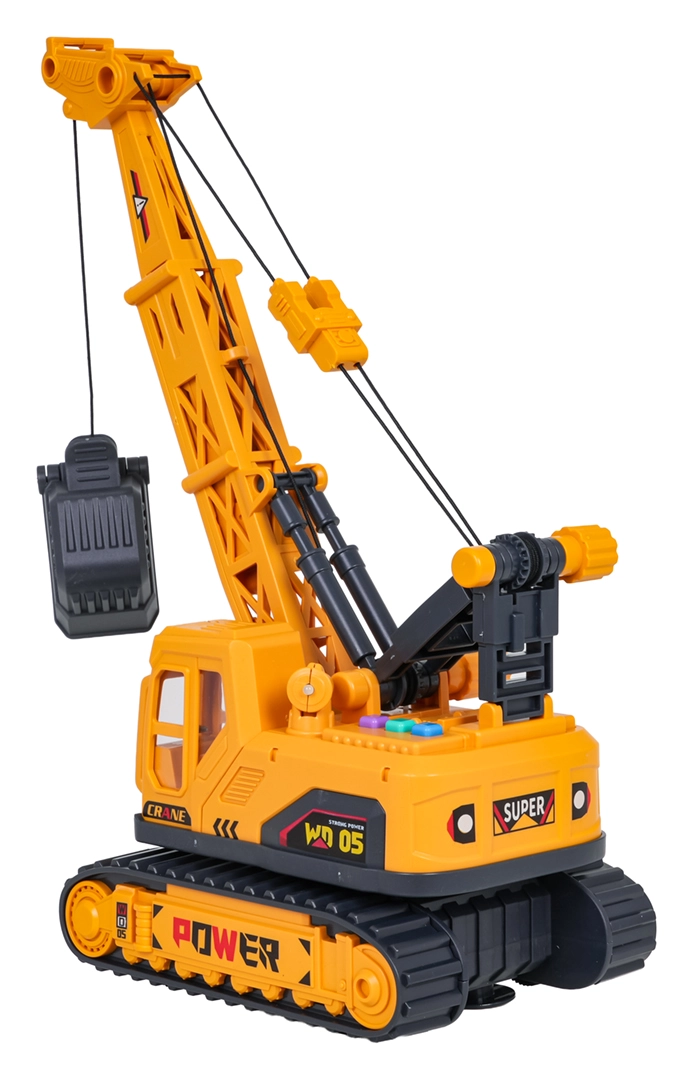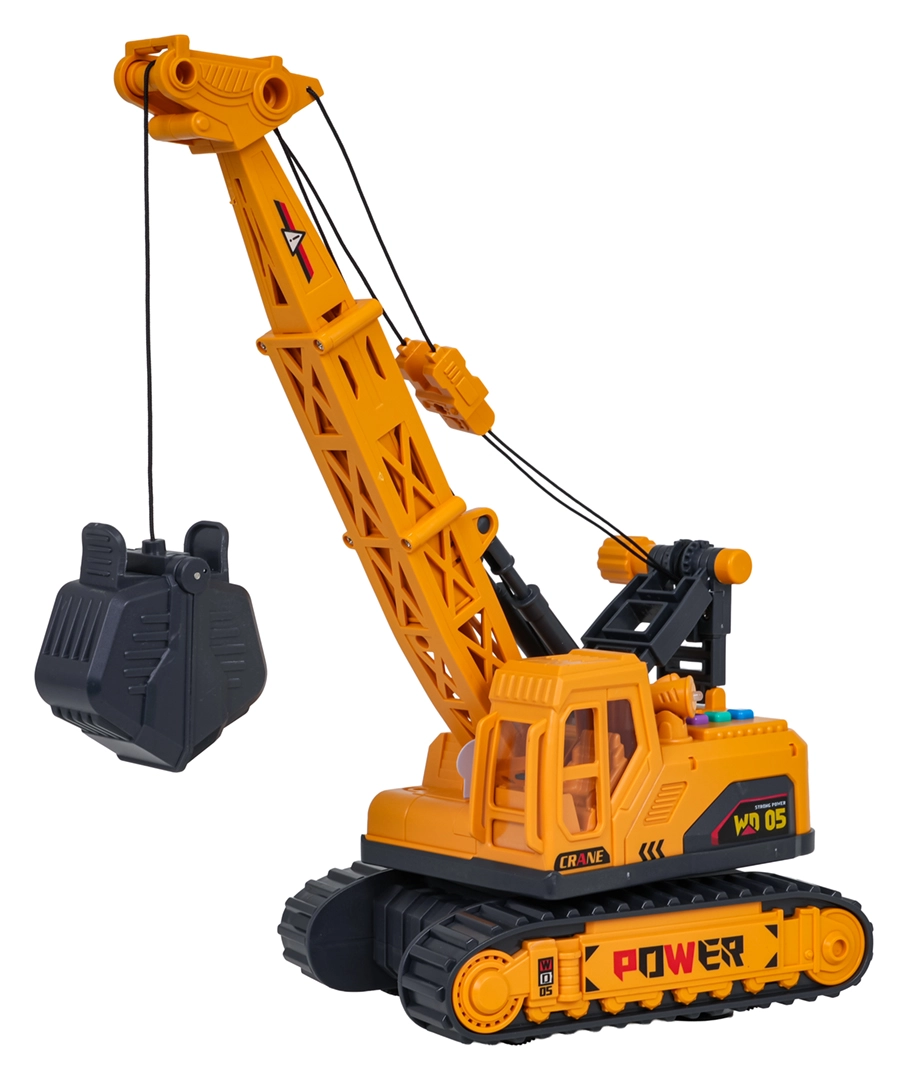 Odkrijte realistično zabavo z gradbenim žerjavom v merilu 1:16. Otroci lahko enostavno upravljajo iztegljivo roko in kleščasto košaro, vrtijo zgornji del za 360° ter z enim pritiskom gumba sprožijo svetlobne in zvočne učinke. Robustno gosenično podvozje in skrbno izdelane podrobnosti spodbujajo domišljijo ter razvijajo fino motoriko.