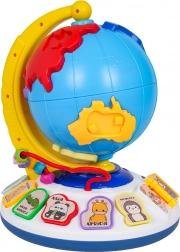 Interaktivni globus Spoznaj svet je idealna izobraževalna igrača za male raziskovalce. Zahvaljujoč povišanim kontinentom, živalskim priponkam in krogli, ki se vrti za 360°, otroci zlahka razumejo, kje se nahajajo posamezni deli sveta. Barvna zasnova, svetlobni učinki in prijetni zvoki ohranijo pozornost in spodbujajo veselje do odkrivanja.