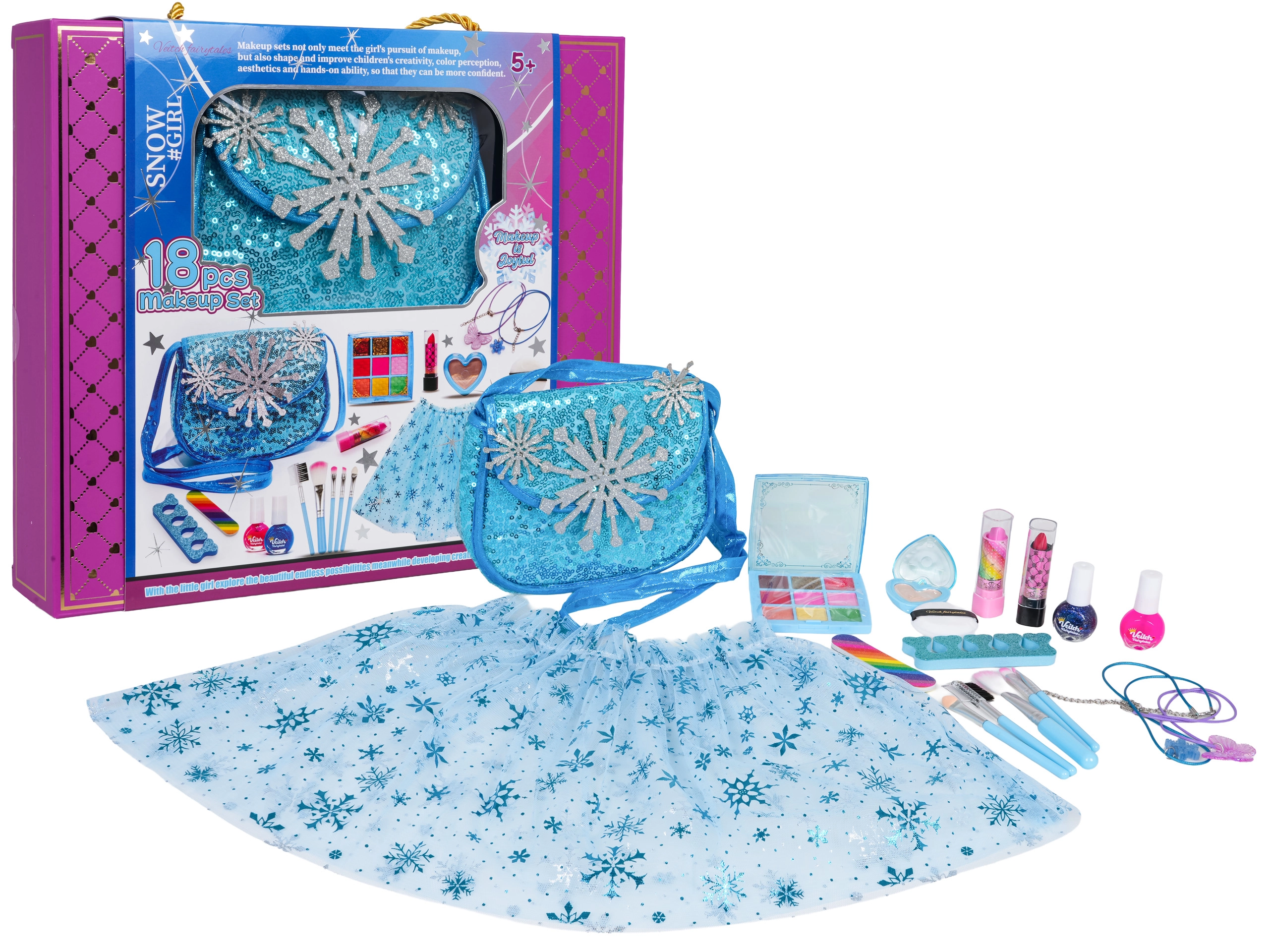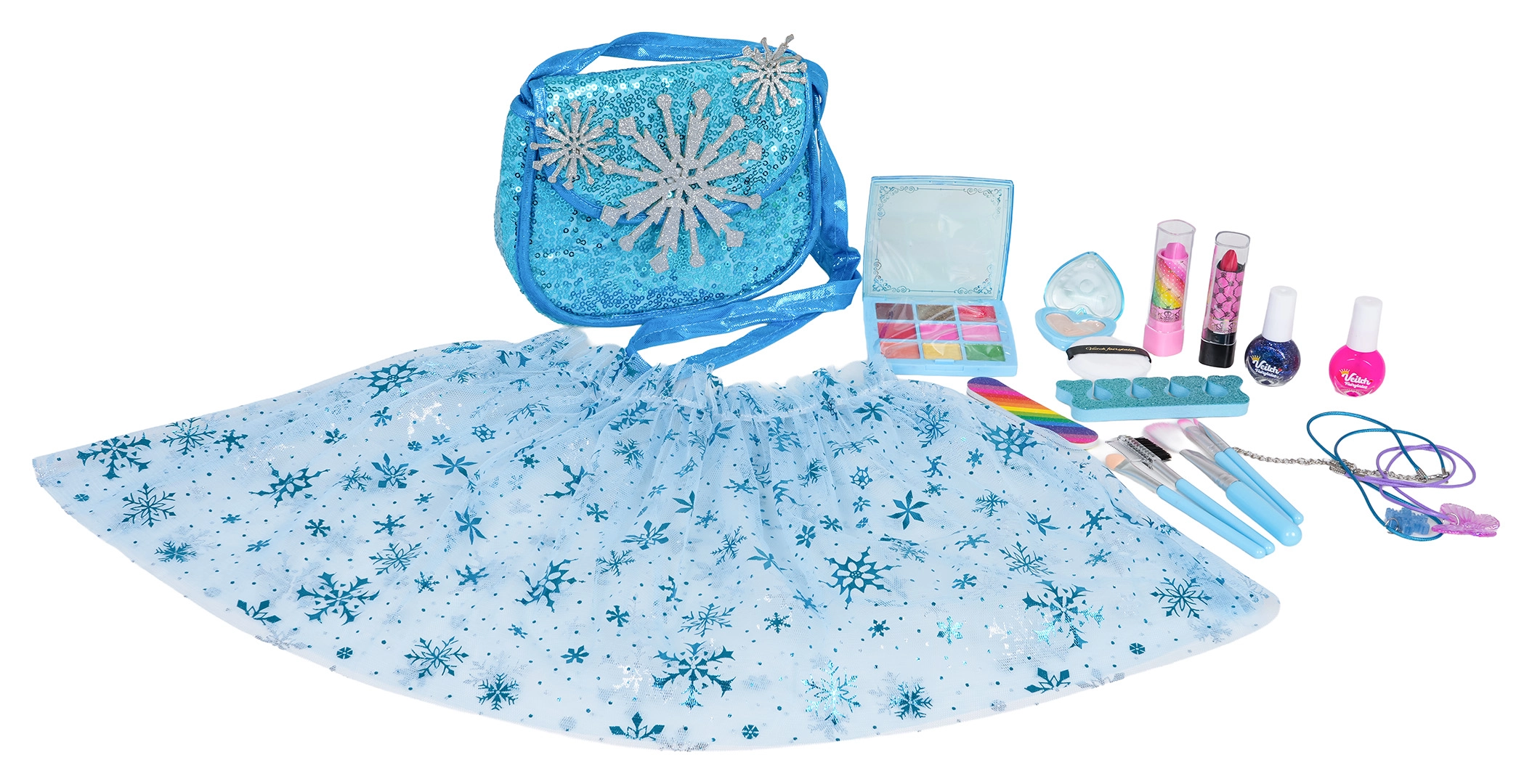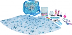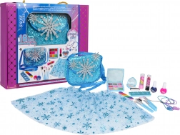 Ta bogato opremljen komplet za otroke od 5 let spodbuja domišljijo, ustvarjalnost in vlogo priljubljene ledene princeske. Vse je ujemajoče v modri barvi s snežinkami in bleščečimi detajli. Zahvaljujoč varnim in enostavno omitivim otroškim komponentam za »make-up« se lahko otroci varno igrajo ličenje in nego nohtov.