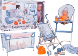 Odkrijte bogato opremljen set za igro mamice z ljubko punčko BABY DINO in 14 deli dodatkov. V njem najdete voziček, hranilni stolček, potovalno posteljico, nočno kahlico, stekleničko in dodatke za hranjenje. Zahvaljujoč varnim materialom, živim barvam ter možnosti napajanja punčke in učenja uporabe kahlice je set idealen za otroke od 3 let dalje.