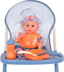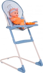 Udobno hranjenje punčke z visokim stolčkom z odstranljivim pladnjem ter kompletom pribora, krožničkom, slinčkom in stekleničko. Odlično za realistične scenarije nege.