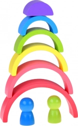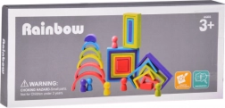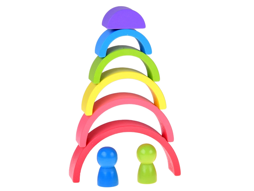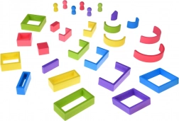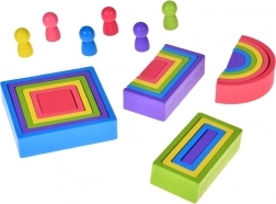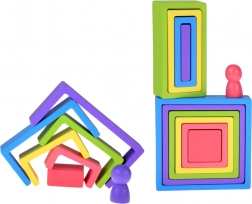Ta pisana lesena zbirka prinaša odprto igro, navdihnjeno z metodo Montessori. Otroci lahko gradijo stolpe, mostove, hišice in abstraktne konstrukcije, razvrščajo dele po velikosti in barvah ali jih med seboj vstavljajo in plastijo. Igra razvija ustvarjalnost, prostorsko predstavo in logično mišljenje.