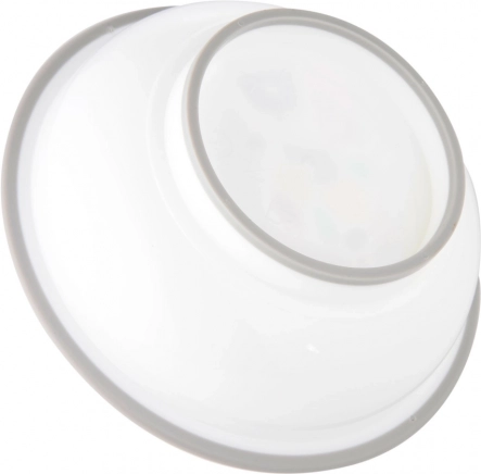 Skodelica z nežnim sivim robom in veselým motivom kravice podpira samostojno prehranjevanje in ohranja hrano tam, kjer mora biti. Zaradi protizdrsnega dna se med hranjenjem ne kotalí in ne drsi. Prostornina 270 ml je popolna za juhe, kaše in manjše porcije.