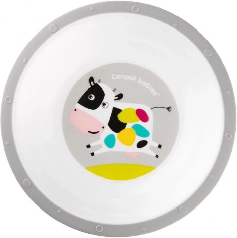 Širok rob zagotavlja udoben oprijem za starše in majhne ročice. Prisrčna kravica motivira otroke k jedi in polepša vsak obrok.