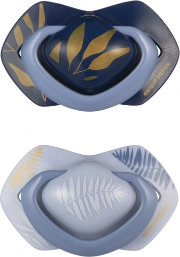 Dudlji Light Touch Gold so zasnovani tako, da spoštujejo naravni razvoj ustne votline otroka. Simetrična oblika se pravilno prilagodi ne glede na položaj v ustih, medtem ko ultralahak ščit z odprtinami pomaga zmanjšati draženje občutljive kože. 100 % silikonska, hipoalergena konica je brez okusa in vonja ter olajša sprejem dudlja.