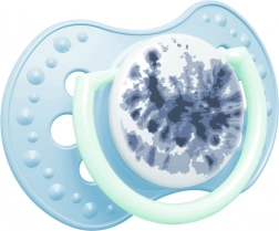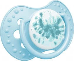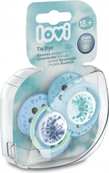 Dinamični dudek LOVI Tie Dye 18m+ posnema naravno sesanje na prsih. Homogena silikonska plast se pri sesanju krči in razteza, konica je simetrična in sploščena za pravilno delo jezika in naravno zapiranje ust. Lahek, ergonomski ščitnik z prezračevalnimi odprtinami pomaga preprečevati draženje kože, oblika pod nosom pa omogoča prosto dihanje.