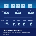 Utrjena silikonska konica je bolj odporna proti grizenju – idealna za starejše otroke 18m+ v obdobju intenzivnega izraščanja zob.