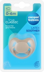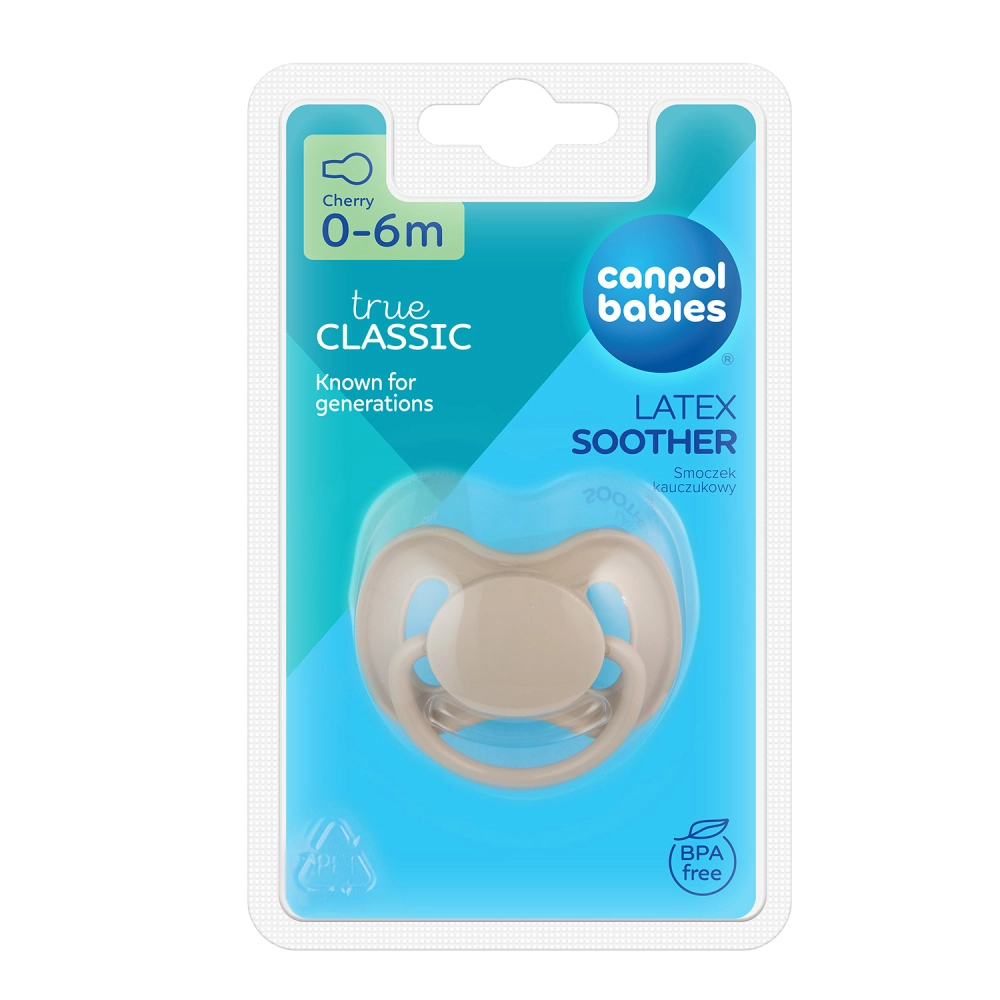 Naravno pomirite svojega dojenčka z dudo iz naravnega kavčuka Canpol babies v nežnem odtenku NUDE. Ima okroglo »češnjevo« konico za naravno sesanje, prezračevalne odprtine za boljši pretok zraka, je brez BPA in ima varen ročaj za enostaven oprijem in pripenjanje sponke. Primerno za otroke 0–6 mesecev.