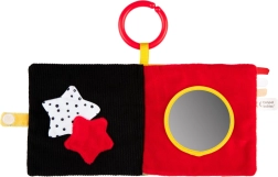 Visok kontrast črne, bele, rdeče in rumene barve z varnim zrcalcem pritegne pozornost dojenčka in podpira vizualni razvoj že od rojstva.