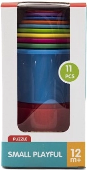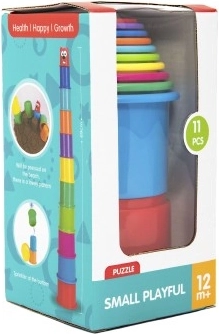 Set pisanih zložljivih lončkov vsebuje 11 delov, ki jih lahko uporabite za izdelavo visokega stolpa. Lončki so različnih barv in se lahko med seboj sestavljajo, kar je odličen način za razvijanje finih motoričnih spretnosti vašega otroka.