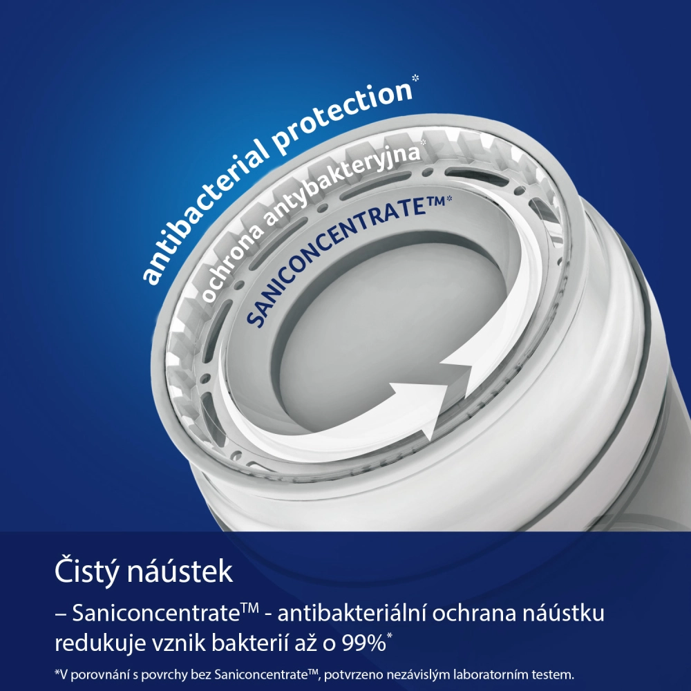 Ustnik z dodatkom Saniconcentrate™ zmanjšuje bakterije do 99,99 % in podpira bolj higienično uporabo lončka.