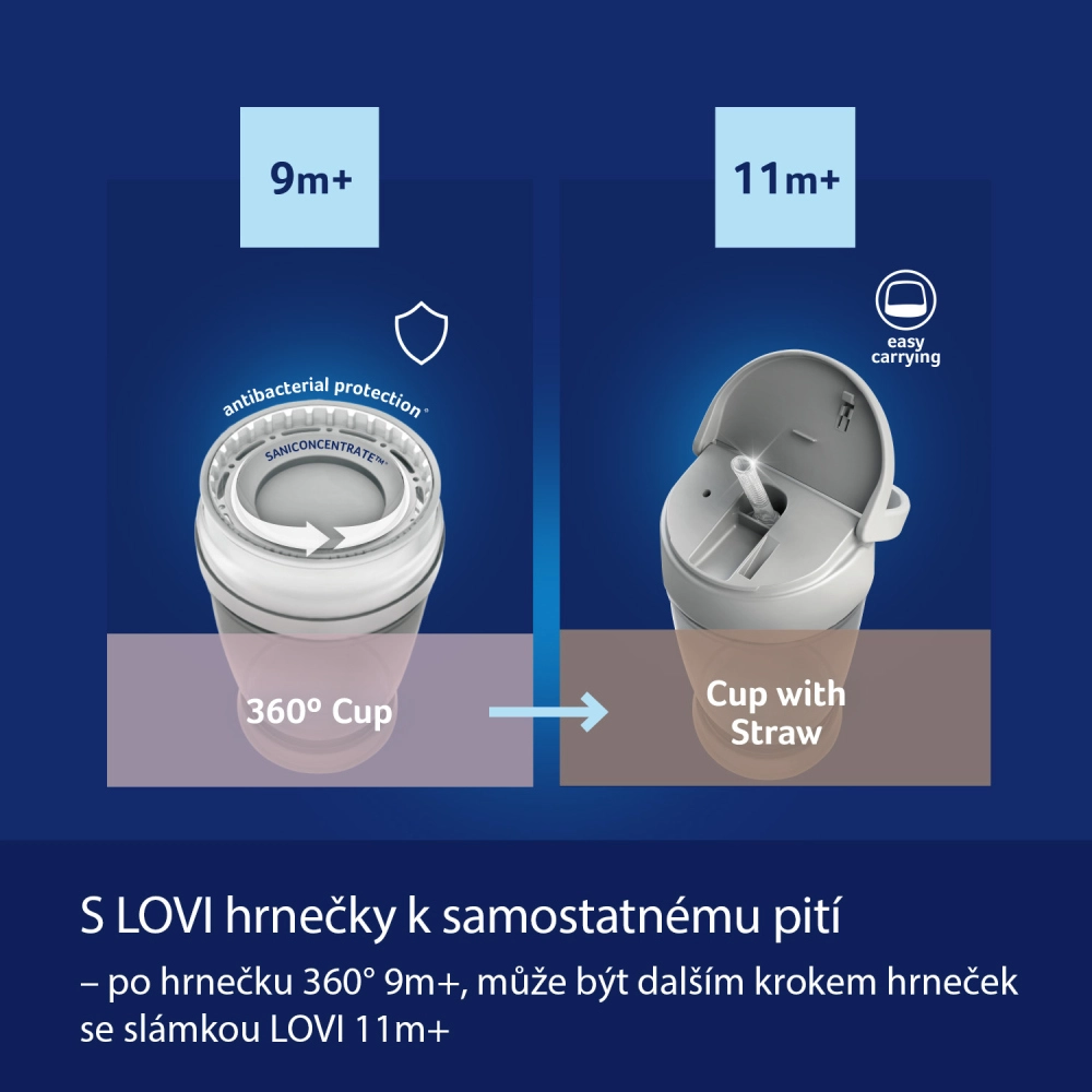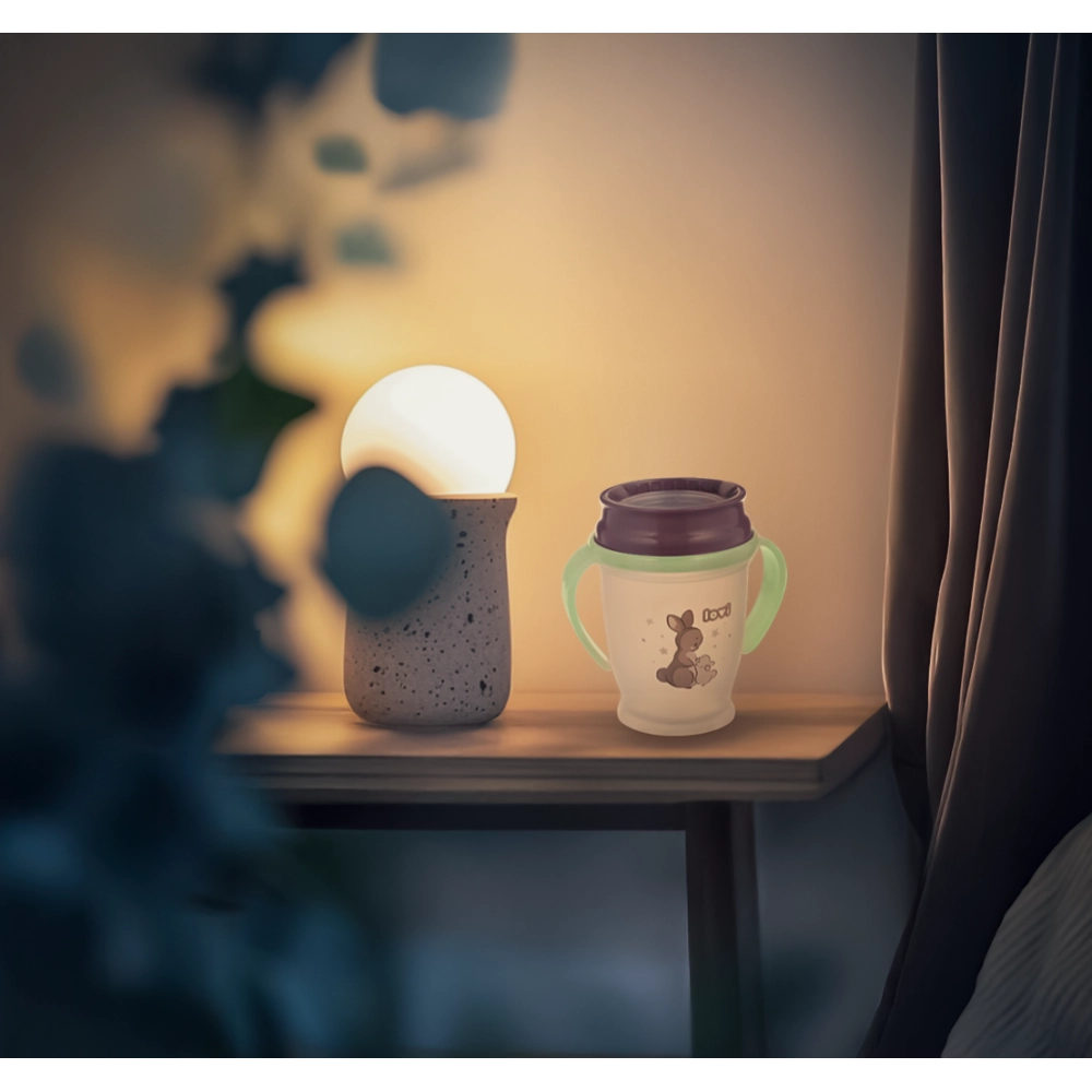 Lonček 360° LOVI Night & Day otroke uči naravnega pitja kot iz kozarca – vendar brez nepotrebnega polivanja. Inovativen tesnilni sistem omogoča pitje po celotnem obodu in hkrati podpira razvoj pravilnih navad. Zahvaljujoč antibakterijski zaščiti Saniconcentrate™ je ustnik bolj higieničen in zmanjšuje količino bakterij do 99,99 %.