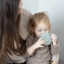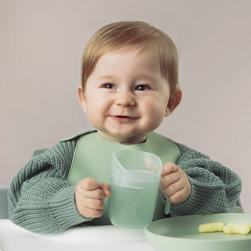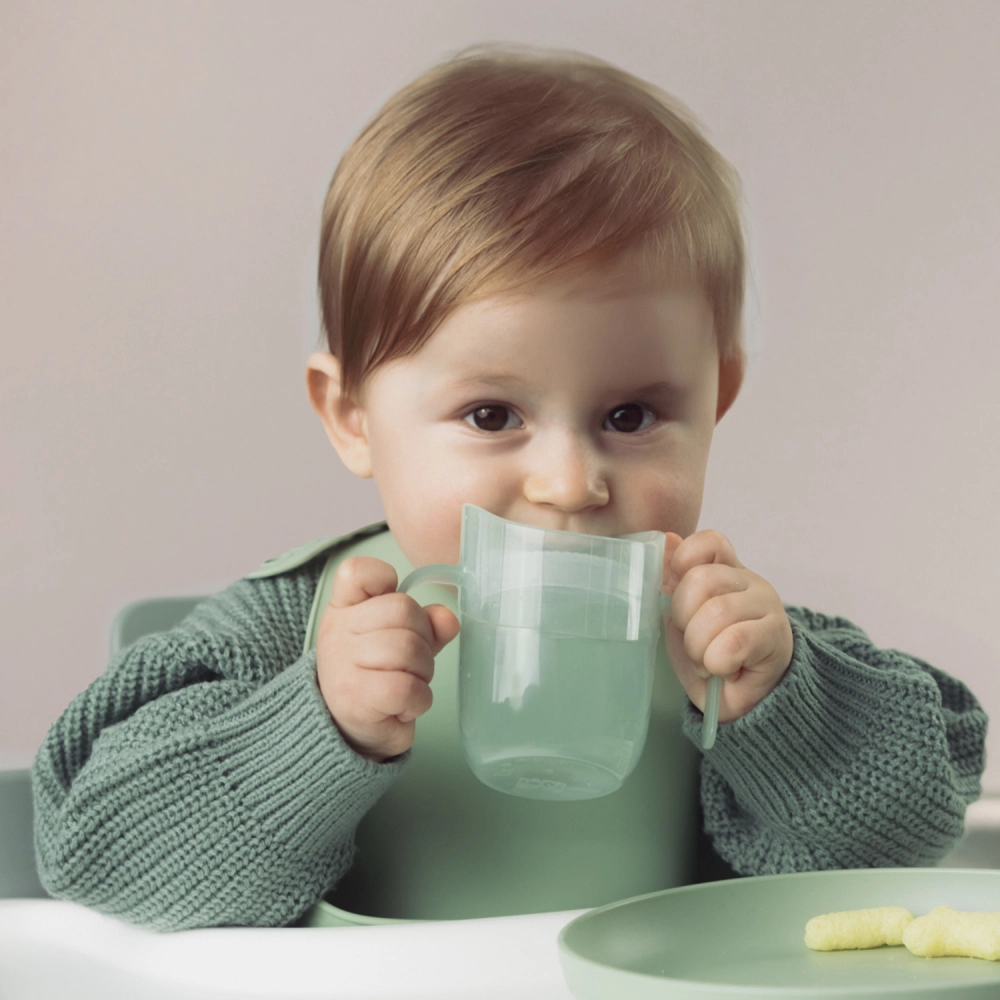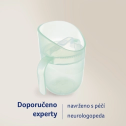 Lahka zasnova, dva široka ročaja in kompaktna velikost ga naredijo odlično izbiro za začetnike. Ko otrok osvoji pravilno tehniko, vložek preprosto odstranite in lonček postane odprti lonček s prostornino 150 ml – en izdelek tako resnično raste z otrokom.
