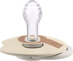 Cuclja iz različno debelega silikona se med sesanjem naravno razteza in krči, podpira dojenje in ne moti razvoja govora ter ugriza*.
