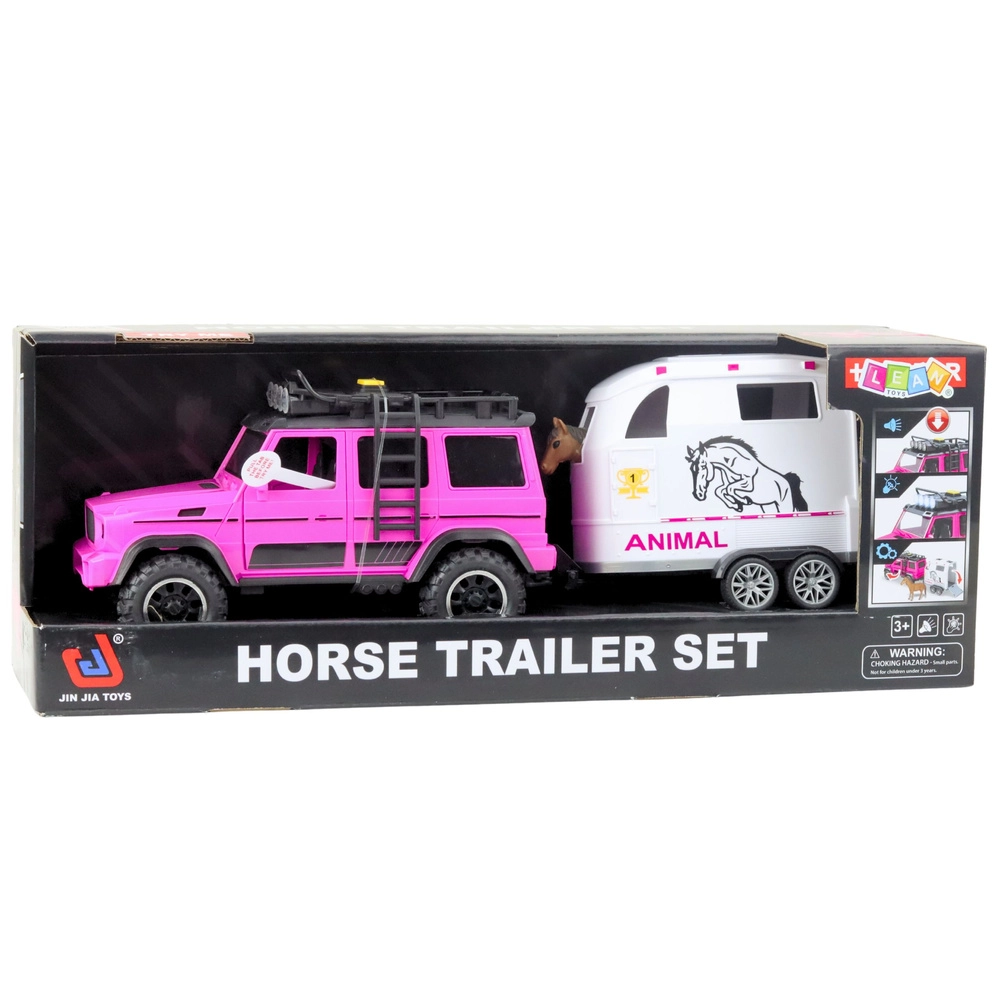 Avto je opremljen z lučmi in zvoki, ki spodbujajo domišljijo, ter z odpirajočimi se vrati za enostavne scenarije prevoza konja. Prikolico je mogoče preprosto odpeti, zato se lahko otroci igrajo z avtom, prikolico in konjem tudi ločeno.