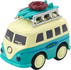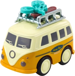 Odkrijte zabavo na štirih kolesih s simpatičnim kamperjem, navdihnjenim s klasičnimi turističnimi kombiji. Zahvaljujoč pogonu na trenje se vozilo po lahkem potisku živahno zapelje, gibljiva strešna prtljaga pa vožnji doda dinamiko. Kompaktna velikost se prilega v nahrbtnik, zato lahko otrok doživi popotniške zgodbe kjerkoli.