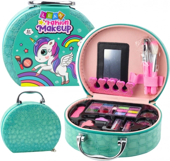 Otroški komplet za ličenje in nohte v turkizni kozmetični torbici