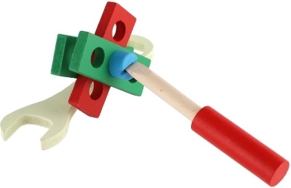 Odkrijte kakovosten leseni kovček z orodjem, ki otrokom omogoča varno posnemanje sveta odraslih. V kompletu najdejo izvijače, kladivce, ključe, matice, vijake, kotnik, ravnilo, žago in druge dodatke. Vse je pregledno shranjeno v čvrstem kovčku z ročajem za enostavno prenašanje.