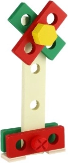Ta izobraževalna igrača razvija fino motoriko, koordinacijo oko–roka ter logično in tehnično razumevanje. Lesena izvedba je vzdržljiva, prijetna na dotik in primerna za vsakodnevno igro.