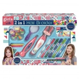 V paketu najdete vse za takojšnje ustvarjanje: napravo za natikanje za hitro delo, različne kroglice za pisane kombinacije, glavnik za urejanje, bombažne nitke in elastike za fiksiranje ter pletilec na baterije 2× AA. Komplet je primeren za otroke od 3. leta dalje.