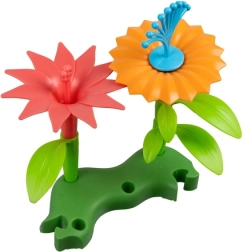 Ta barviti gradbeni komplet otrokom omogoča sestavljanje stebel, listov, cvetnih listov in pestičev v izvirne cvetlične kompozicije. Zahvaljujoč modularnim delom lahko cvetove nenehno preurejate in razširjate, kar razvija ustvarjalnost in logično razmišljanje. Stabilni zeleni podstavki ohranjajo stvaritve trdno na mestu.