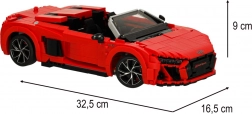 Ta podroben konstrukcijski set prinaša realistično izdelan model AUDI R8 Spyder s premišljeno oblikovanimi linijami karoserije, koles in kokpita. Zahvaljujoč velikemu številu kosov boste ustvarili precizno maketo dimenzij 32,5 × 16,5 × 9 cm, ki izstopa na polici ali v pisarni.