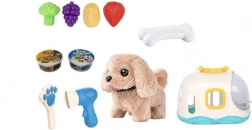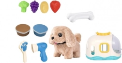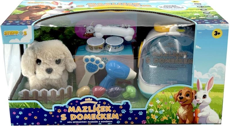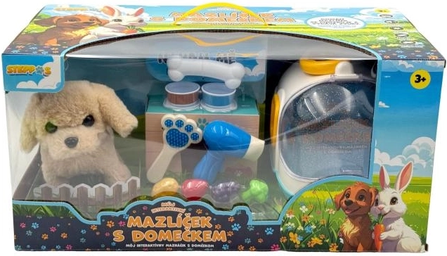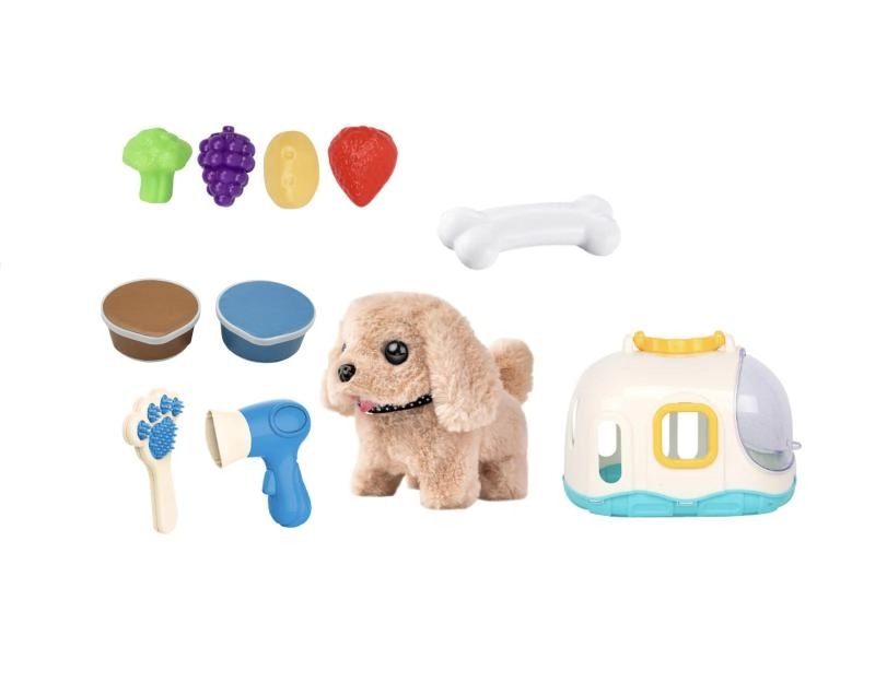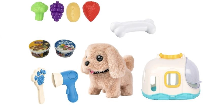 Praktična hišica služi kot prijeten domek in kot prenosni kovček, zato lahko otroci kužka vzamejo kamor koli. V pakiranju najdejo tudi dodatke za nego – glavniček in sušilec – ter plastične dobrote v obliki sadja in zelenjave za igro hranjenja.