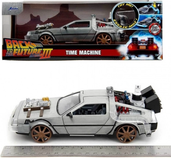 Natančen zbirateljski model vozila DeLorean iz filma Nazaj v prihodnost III v merilu 1:24 znamke Jada Toys. Kovinska izdelava, odpirajoča se krilna vrata, funkcionalne luči in pristna rjava »vlak« platišča zagotavljajo vrhunski realizem. Idealno za oboževalce filmske serije, otroke od 8 let dalje in odrasle zbiratelje.