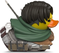 Ta stilizirana zbirateljska račkica TUBBZ prinaša oboževalcem Attack on Titan priljubljenega kapitana Levija v prikupni “duck” interpretaciji. Zvesti detajli, kot so zeleni plašč, emblem na jakni in dvojna rezila, poudarjajo avtentičnost uradne licence in bodo razveselili vsakega oboževalca ter zbiratelja omejenih izdaj.