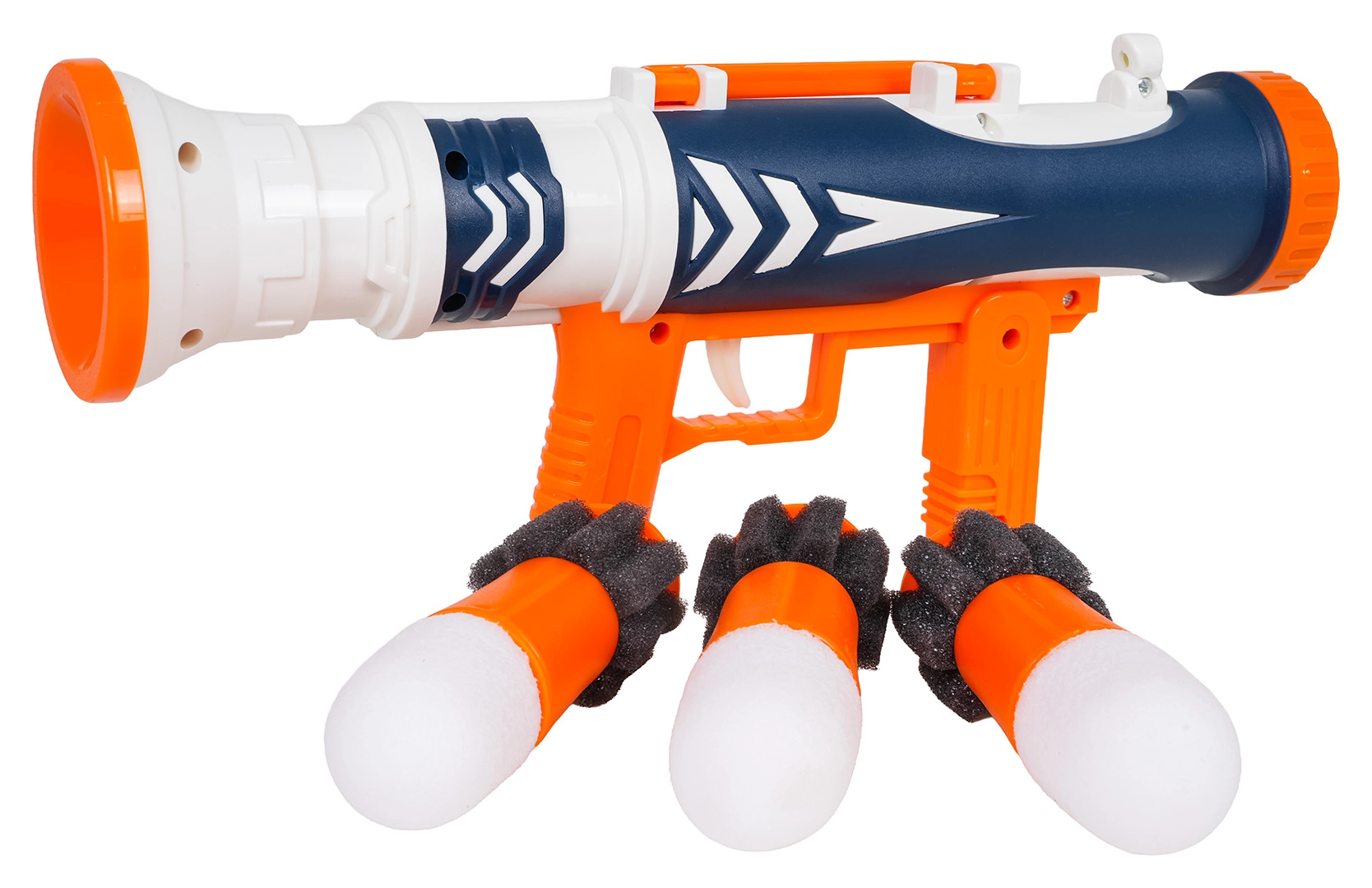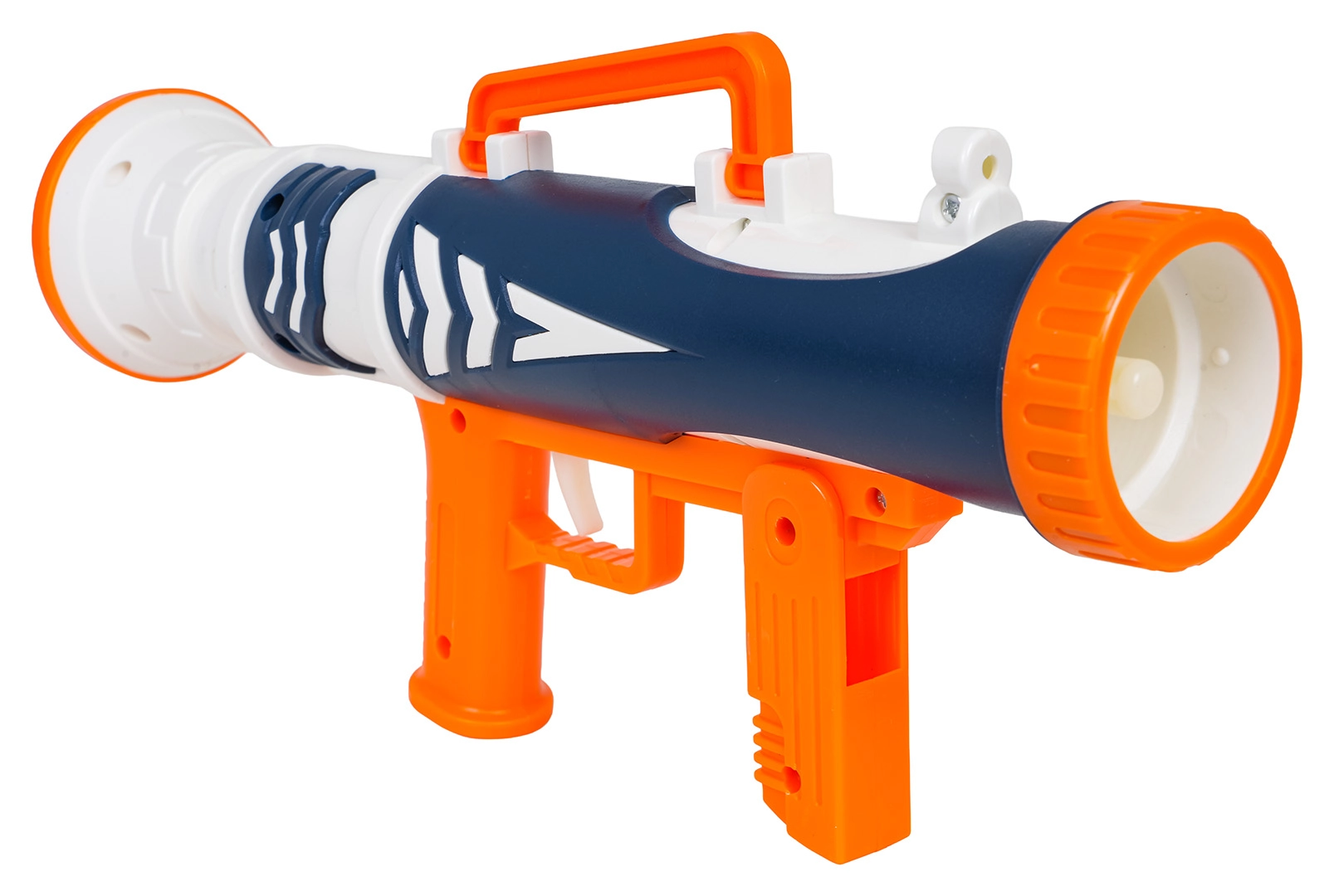 Ta velika penasta izstreljevalka prinaša veliko akcije brez skrbi – mehki penasti izstrelki so prijazni in primerni za otroke od 6 let. Upravljanje je zelo preprosto: vstavite izstrelek v cev in pritisnite sprožilec. Zahvaljujoč udobnemu prenosnemu ročaju in robustni izdelavi je idealna za vrt, igrišče in domača tekmovanja v natančnosti.