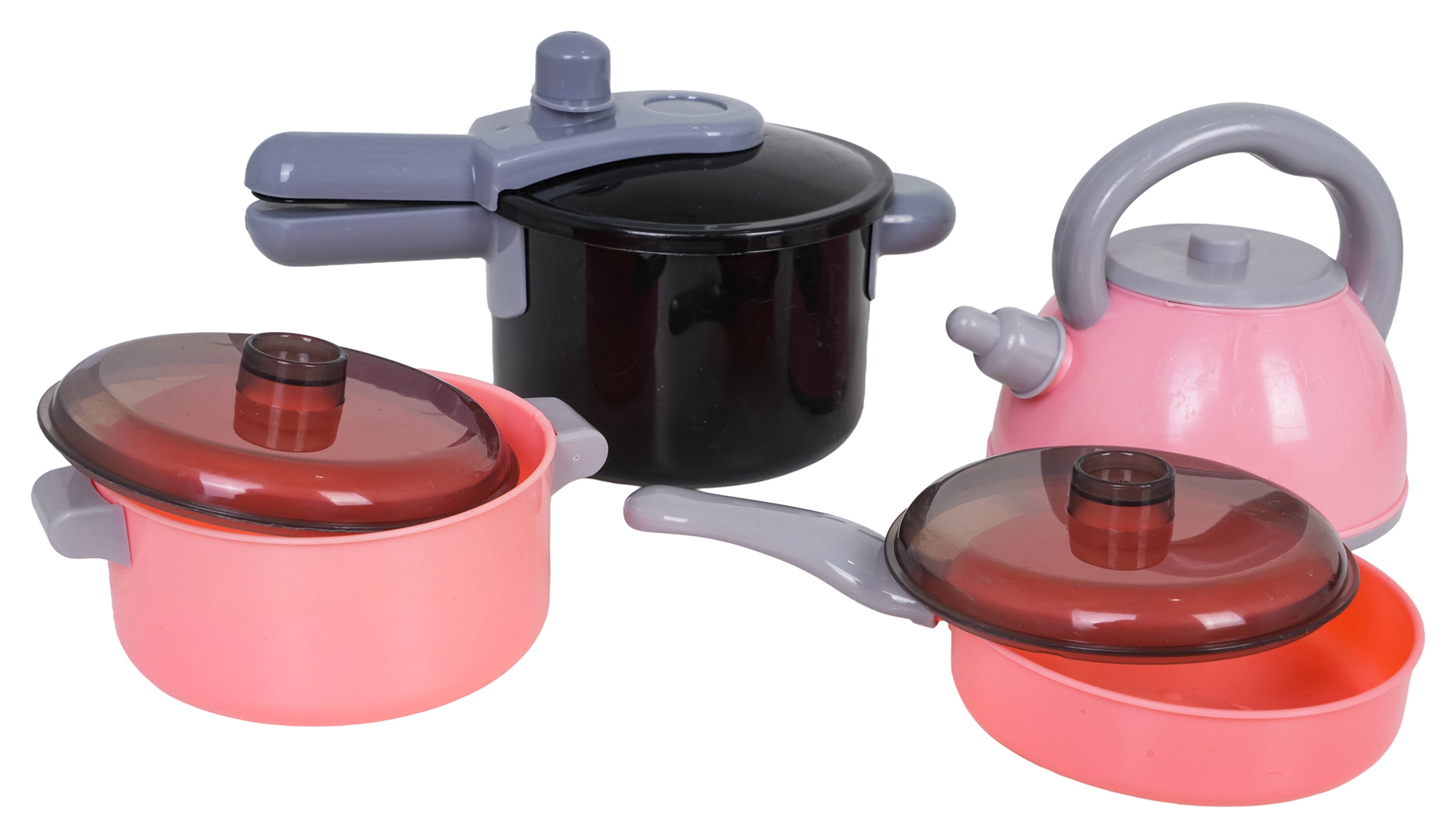 Lonec, ponev s pokrovom, lonec na pritisk in čajnik dopolnjuje kompaktni žar. Otroci lahko kuhajo, dušijo in pečejo najljubše “jedi”.